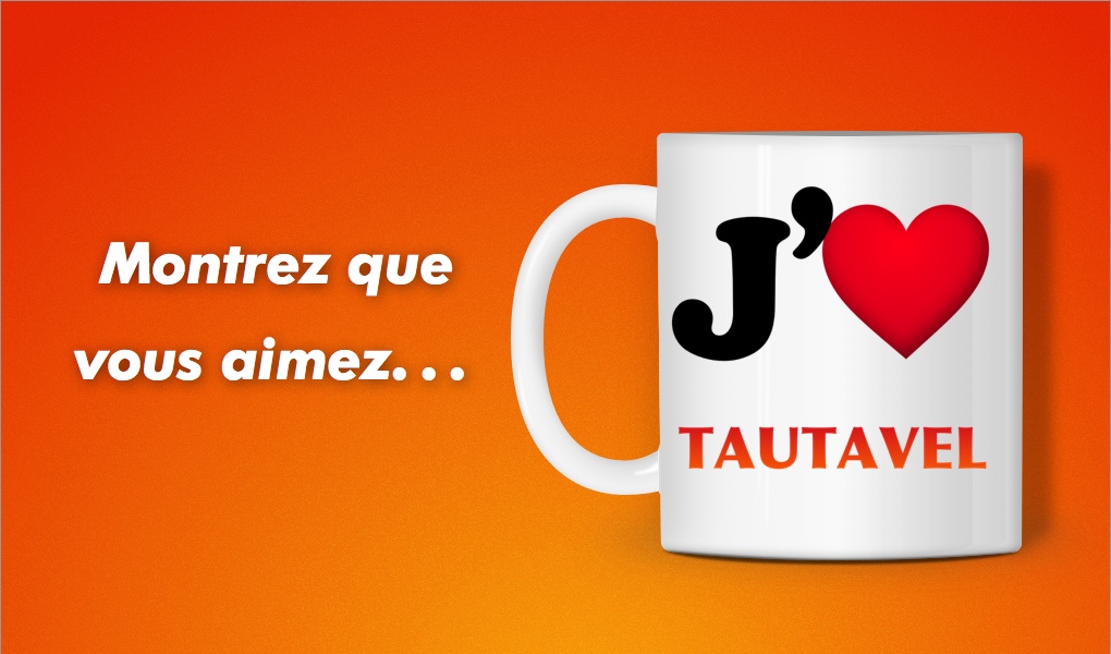 Mug en céramique avec "J'aime Tautavel" avec un coeur et l'inscription de la ville de Tautavel.Vous aimez la ville de Tautavel ? alors n'hésitez pas à acheter ce Mug "J'aime Tautavel".